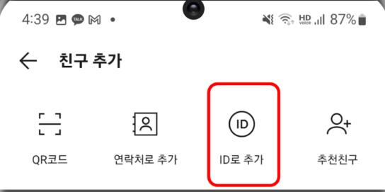 저희는 ID로 추가를 누를 것입니다.